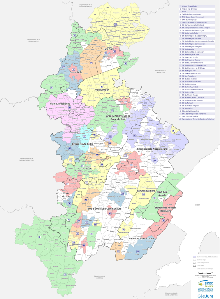 Collectivités gestionnaires de l'eau potable dans le département du Jura.